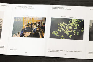 Machine learning based image recognition tools are already adept at recognizing training images (umbrella, dog on a beach, car), but quickly expose their flaws and biases when challenged with more complex input. In Computed Curation, these flaws surface in often bizarre and sometimes poetic captions, tags and connections. Moreover, by urging the viewer to constantly speculate on the logic behind its arrangement, the book teaches how to see the world through the eyes of an algorithm.